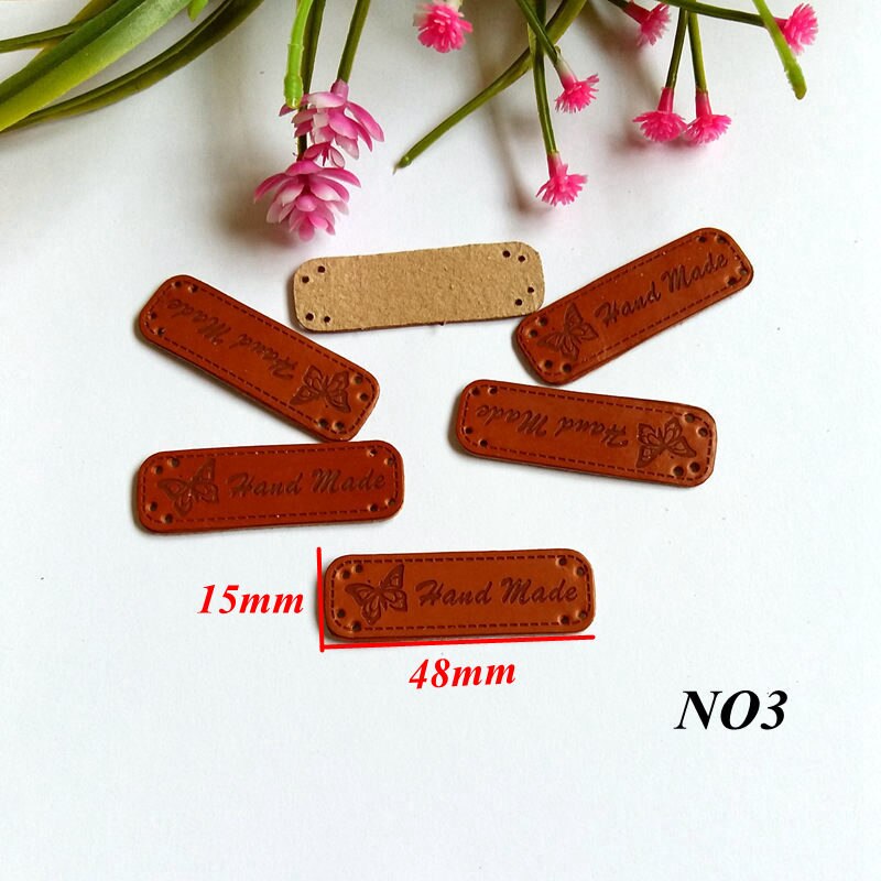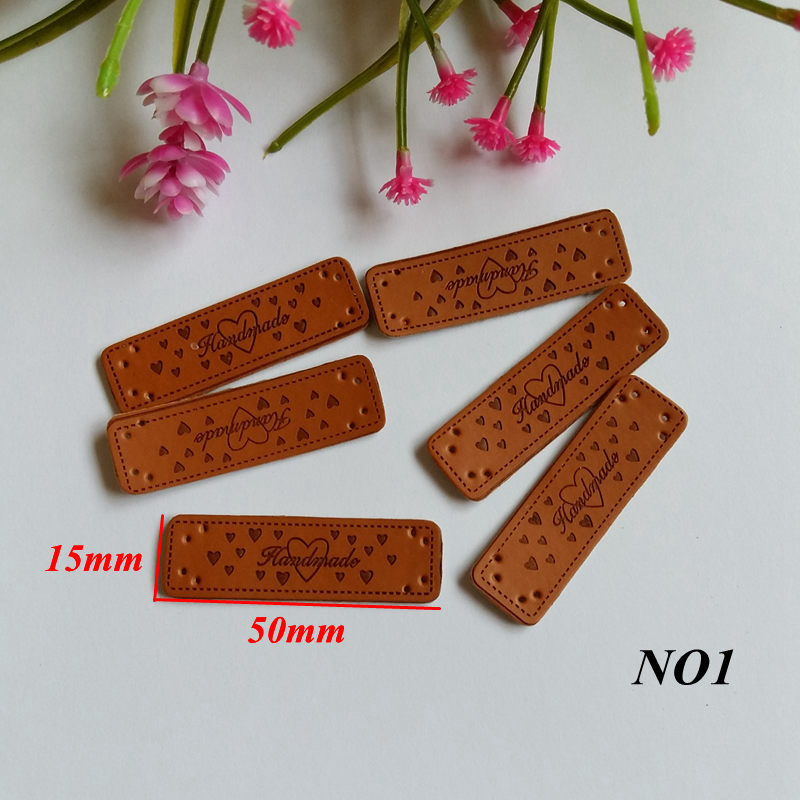 10pcs PU Leather Labels Handmade garment Labels 15MM*50MM for Crafts Brown Handicraft Sewing label