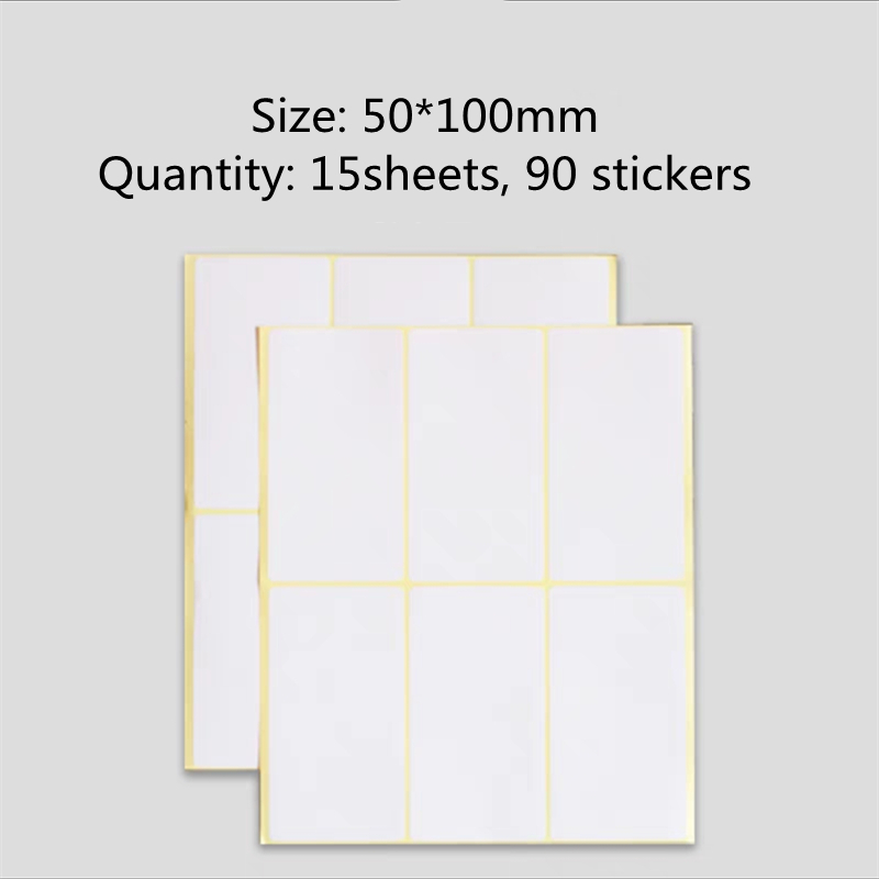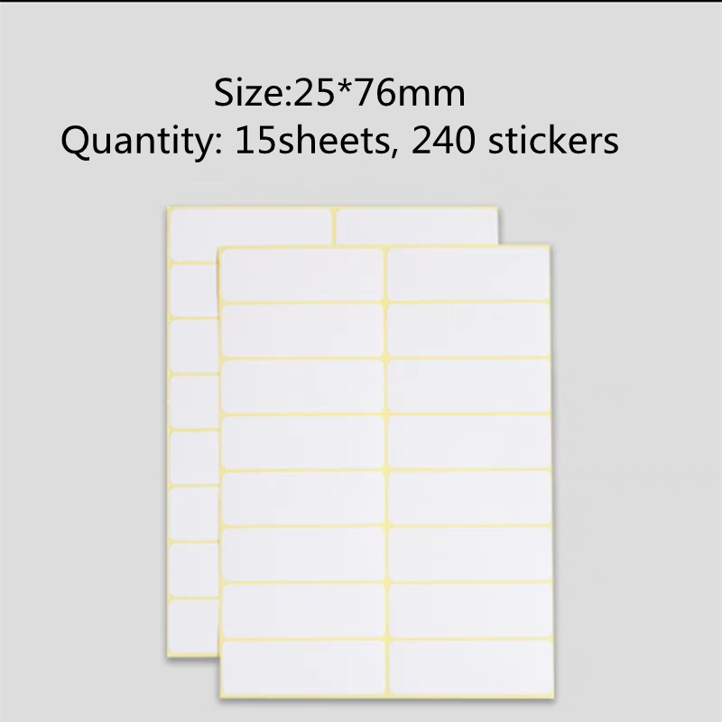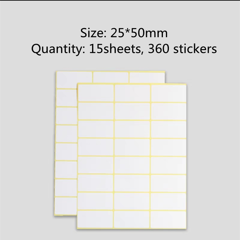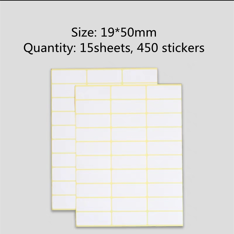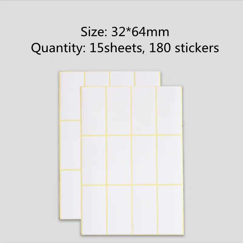 15Sheets Paper Self Adhesive Sticky White Label Name Stickers Blank Note Label Bar DIY Stationery Sticker Various Sizes Optional