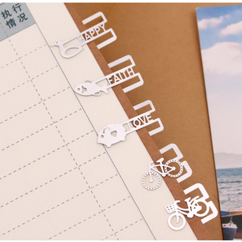 20pcs/lot Mini Metal Bookmark Clips Cute Cartoon Animal Plated Sliver Bookmarks Stationery book line marker Random Style