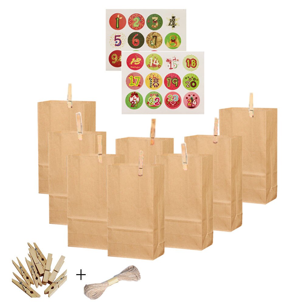 24pcs/set Kraft Paper Bag Christmas Bag Treat Candy Box Birthday Year Party Favor Stand Bags