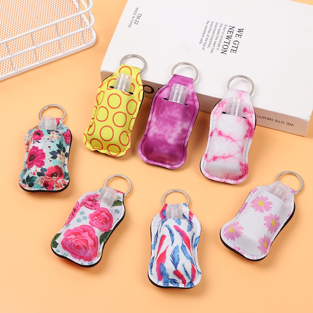 2pc/set Hand Sanitizer Keychain Holder Travel Bottle Refillable Containers 30ml Flip Cap Reusable Bottles with Keychain Carrier