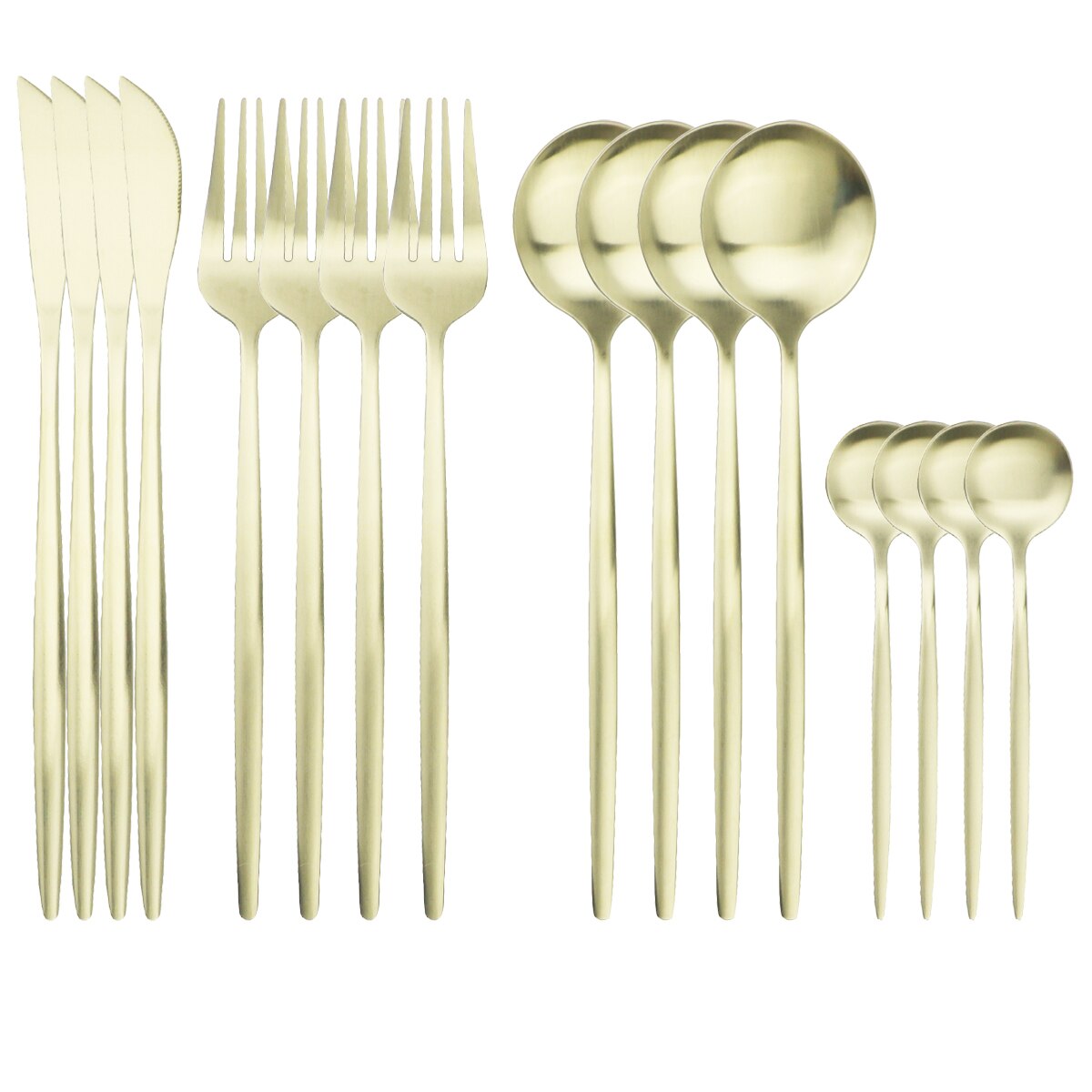 4Set/16Pcs Red Gold Dinnerware Cutlery Set Western Knives Fork Tea Spoon Dinner Tableware Stainless Steel Kitchen Silverware Set