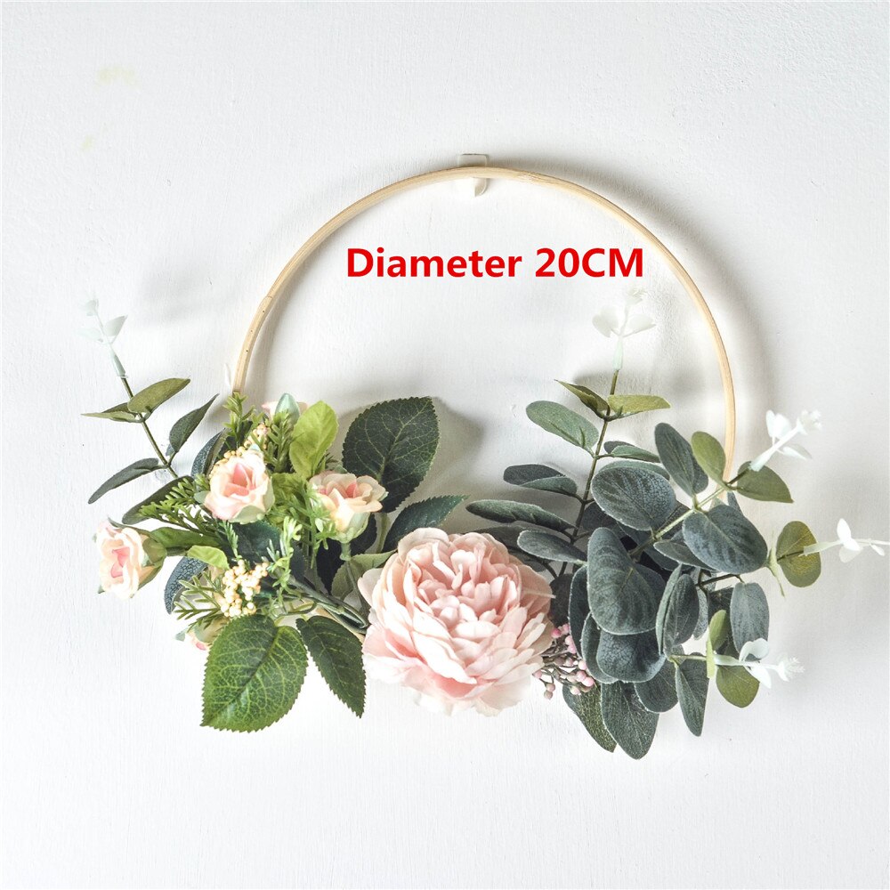 Cilected Hydrangea Eucalyptus Garland Wooden Wall Hanging Decoration Artificial Flower Garland Hoop Wreath For Wedding Backdrop