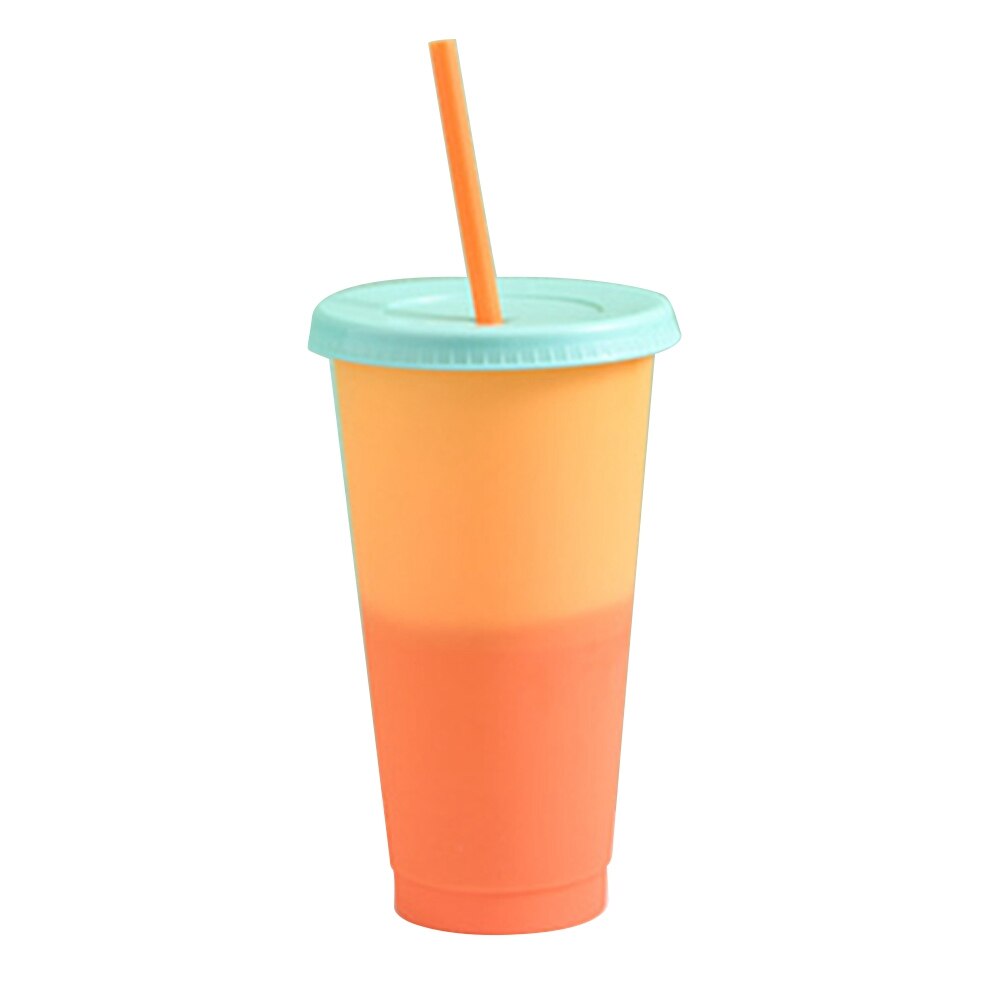 Color Changing Cold Drink Cups Reusable Temperature-Sensitive Plastic Colorful Coffee Cup with Lids and Straws