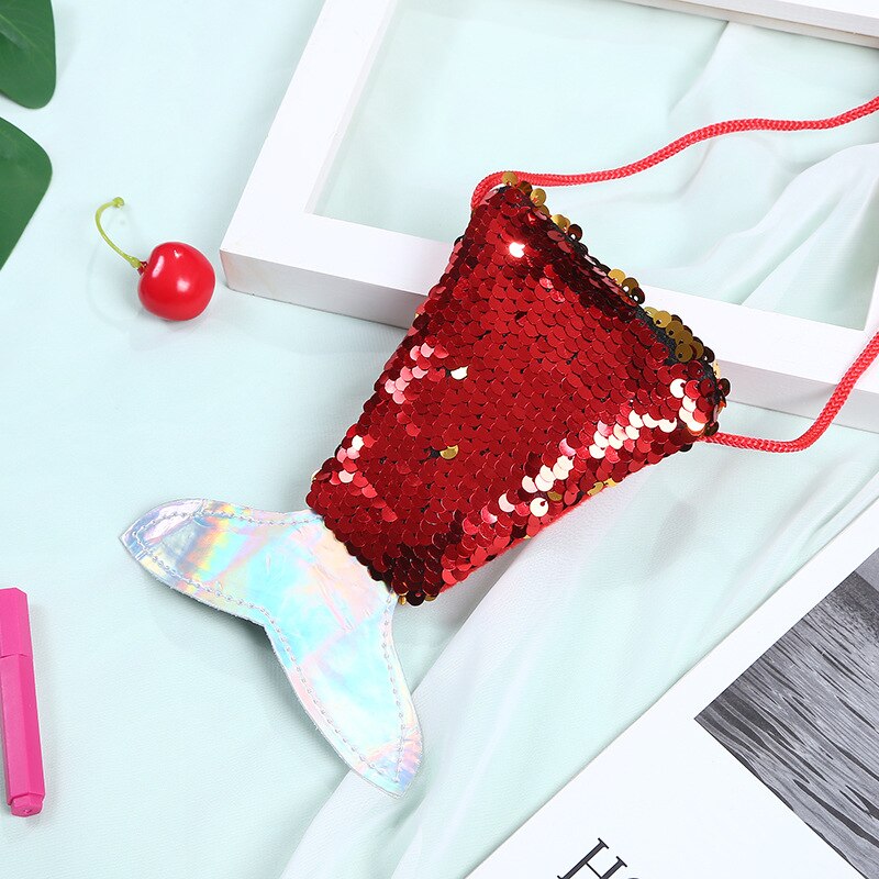 cute girl waist bag mermaid fishtail sequins fanny pack chest bag mini purse Long Rope Coin Purse Girls Crossbody Bags
