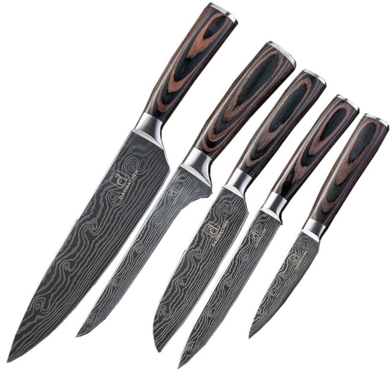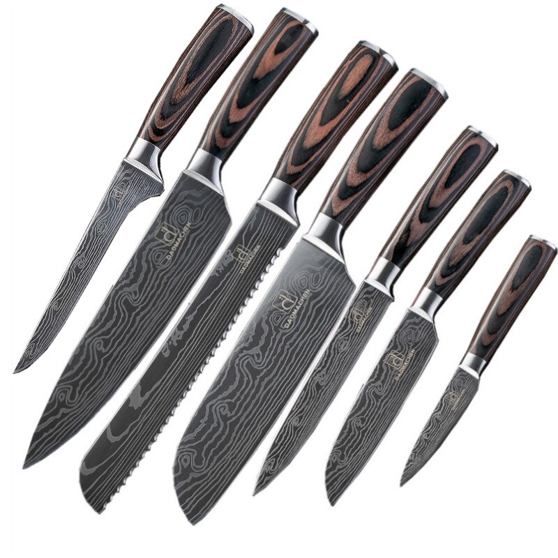 DAOMACHEN 10 Pcs Stainless Steel Kitchen Knives Set Wooden Handle Bread Chef Knives Slicing Utility Paring Knife Multi Cookin