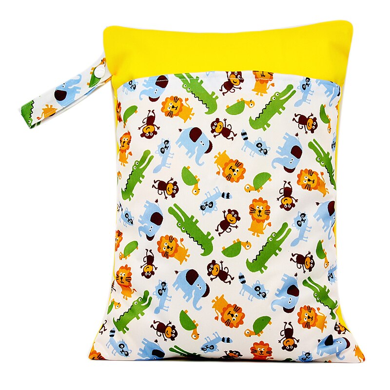 Diaper Storage Bag Waterproof Baby Carriage Storage Hanging Bag Portable Cute Print Double Zipper Diaper Stackers Pocket