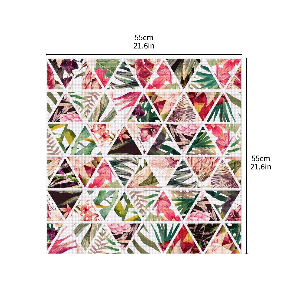 DIY Vinly Tropical Flower Triangle Tile Tablecloth Cantact Paper Waterproof Self Adhesive Table Stickers For Kitchen Dining Room
