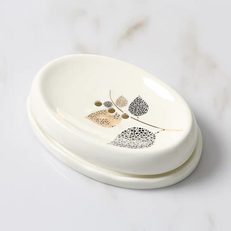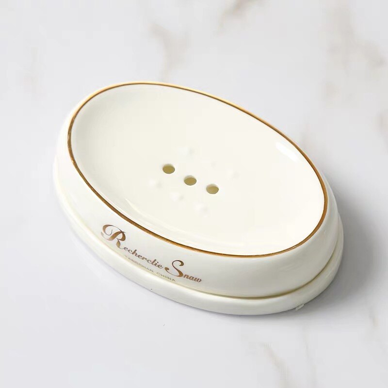 European Pastoral Bone China Soap Box Ceramic Bathroom Toilet White Porcelain Soap Draining Dish Home Light Luxury Soap Tray