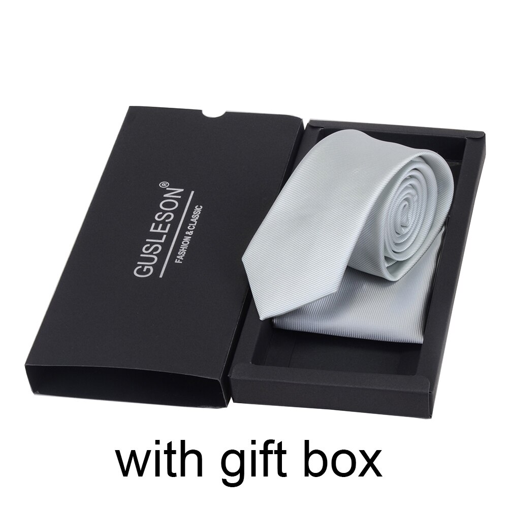 GUSLESON Slim Men Tie Pocket Square Set 6cm Skinny Necktie Red Yellow Green Ties With Box Suit Wedding Business