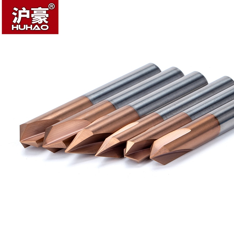 HUHAO 1PC Tungsten Carbide Straight Groove Chamfering Milling Cutter 60 /90 /120 Degrees CNC Tool For Engraving Machine End Mill