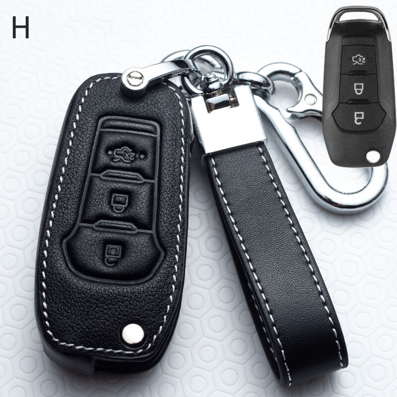 Leather Car Key Cover Key Case For Ford Focus Fiesta Mondeo Kuga Escape Fusion Mustang Explorer Edge Ecosport