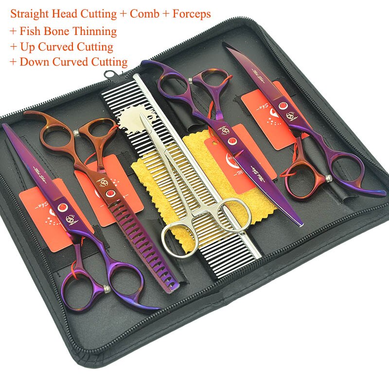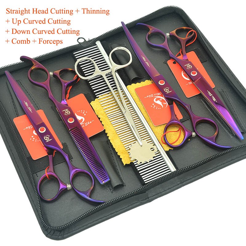 Meisha 7" Pet Scissors Set Dogs Grooming Cutting Shears Thinning Clippers Curved Tijeras with Forceps Puppy Beauty Tools HB0234