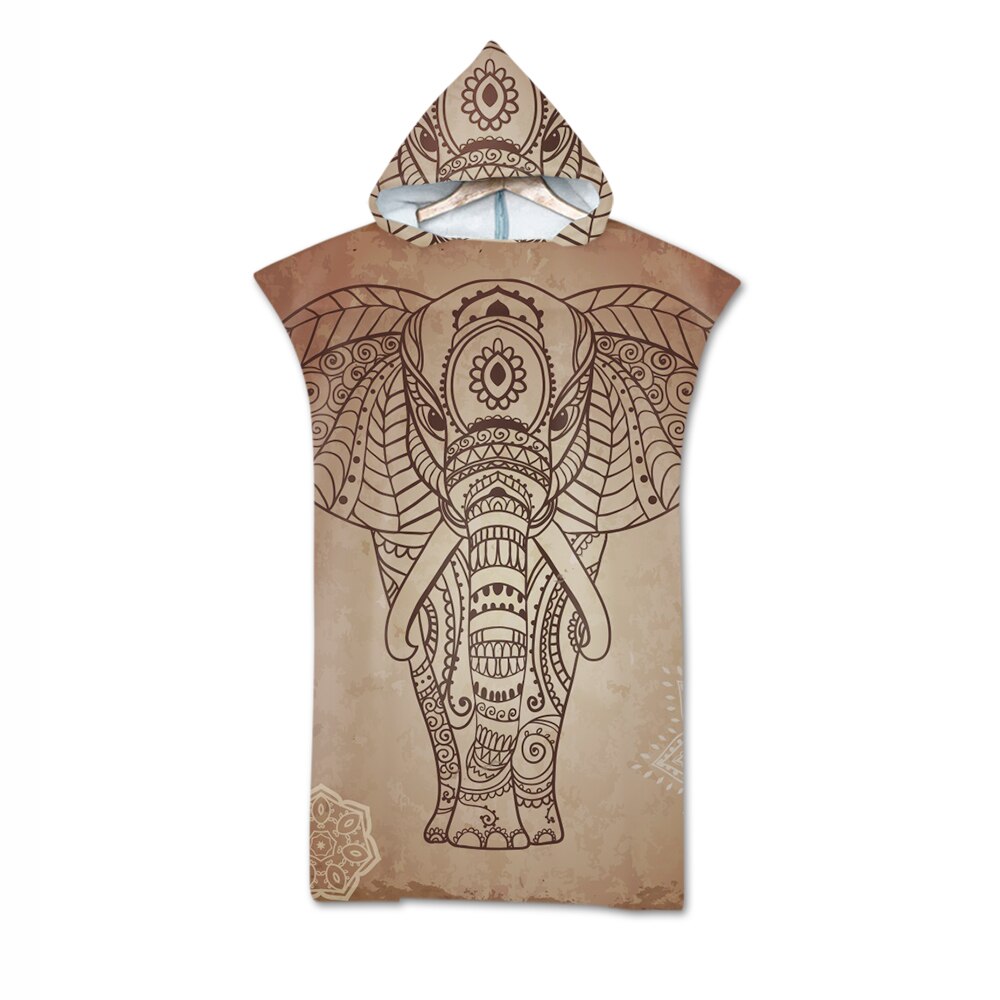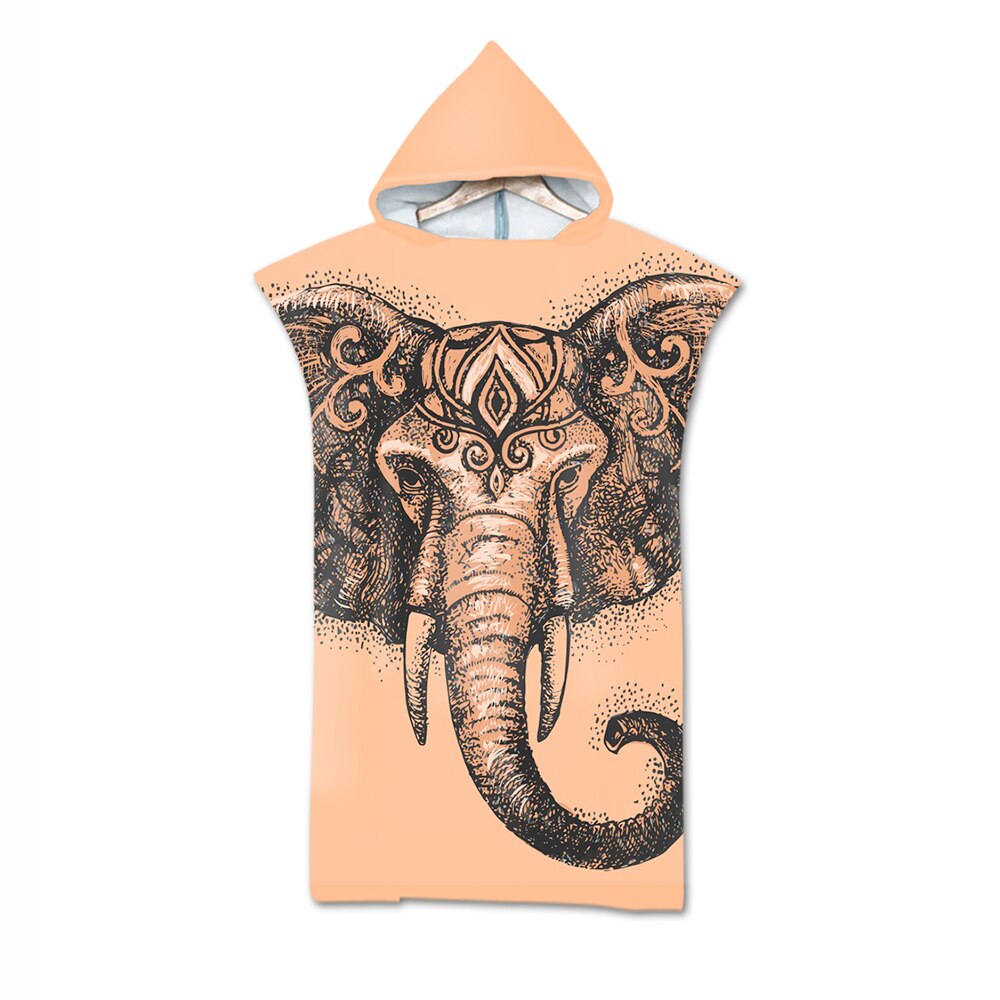 Microfiber Changing Robe Bath Towel Outdoor Hooded Wetsuit Print Elephant Beach Towel Poncho Bathrobe Cloak For Adult Swimming