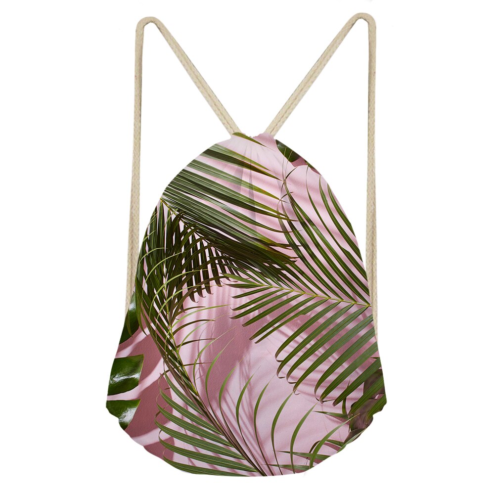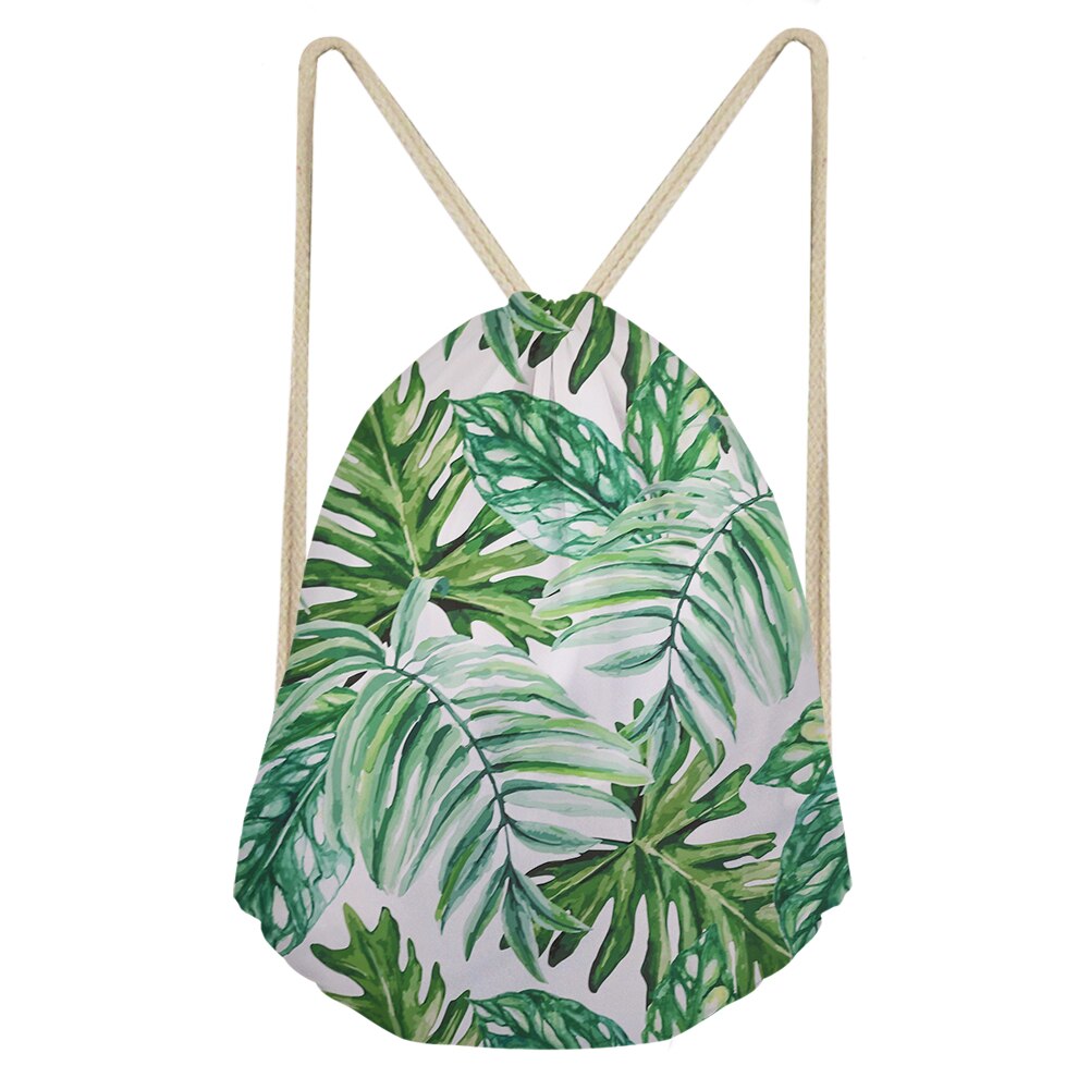Palm Leaves And Floral Split-leaf Philodendron Drawstring Bag Outdoor Fitness Beam Mouth Backpack Sports Bag Travel Backpack