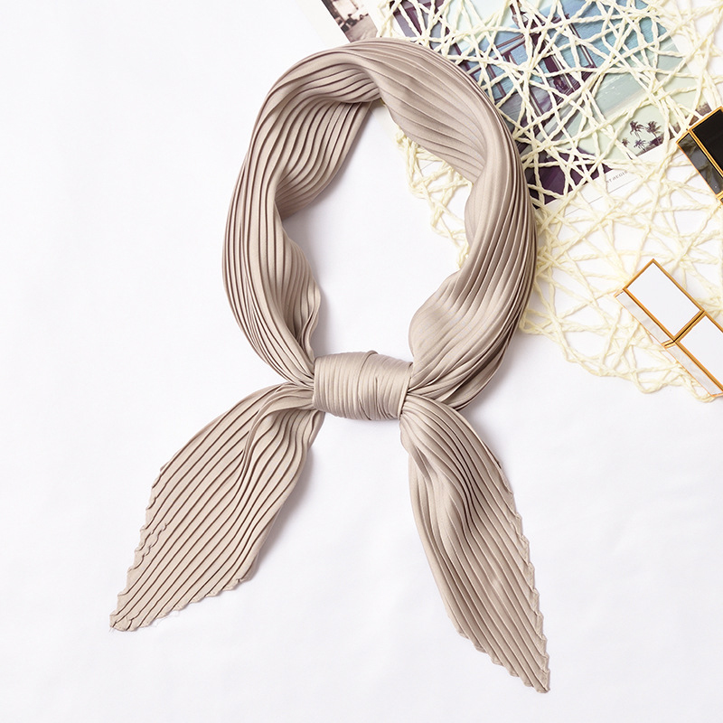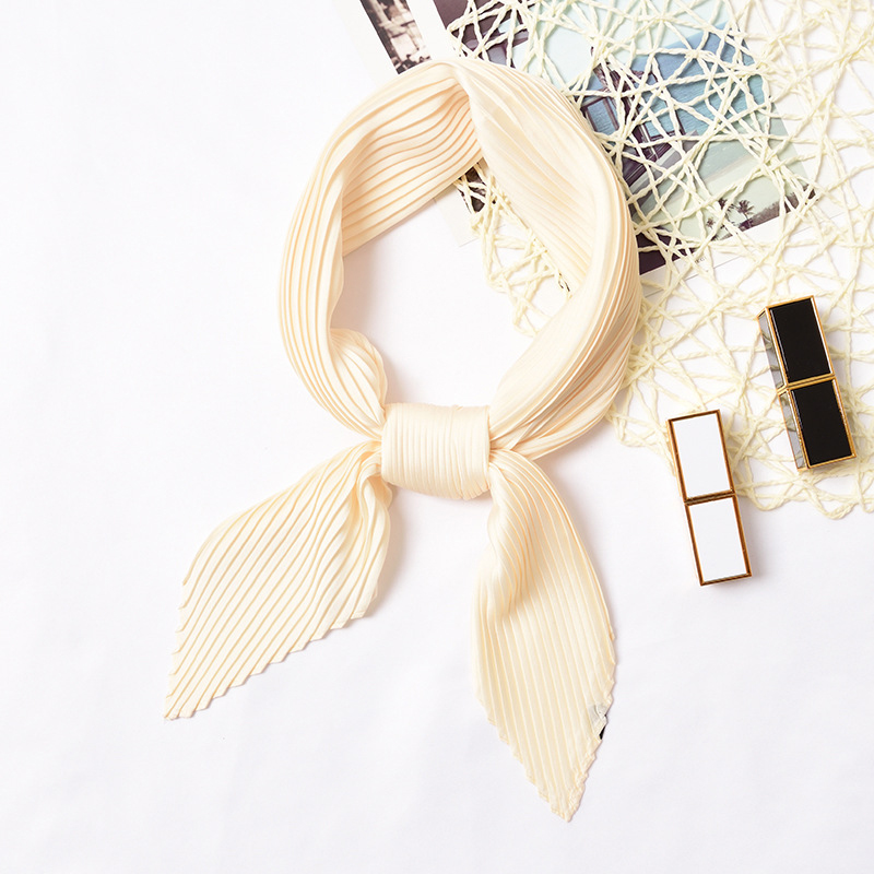 Plain Women Square Silk Scarf Skinny Ribbon Head Neck Small Pleated Hair Tie Band Kerchief Satin Foulard Scarves