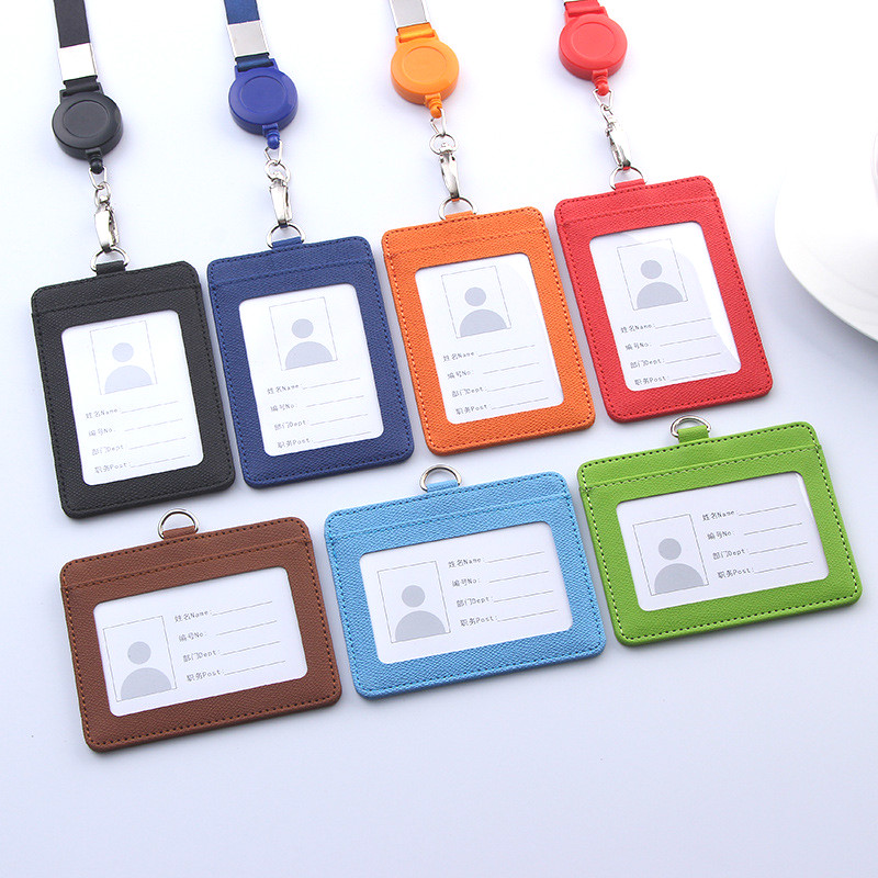 PU Leather Lanyard retractable badge holder ID card holder school lanyards id badge holder horizontal badge holder transparent