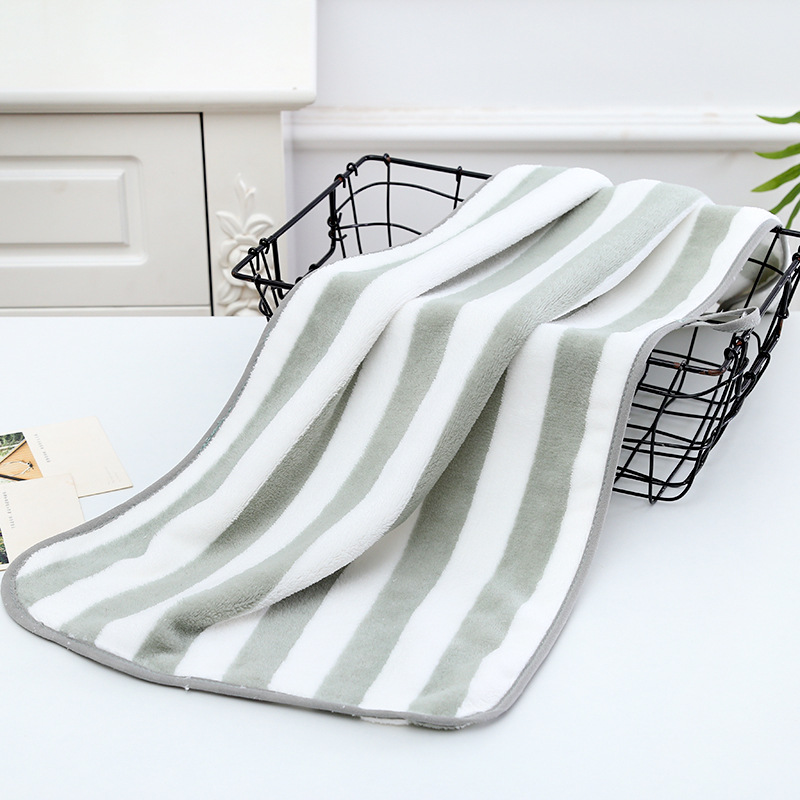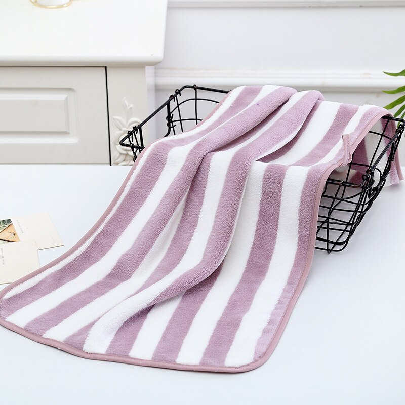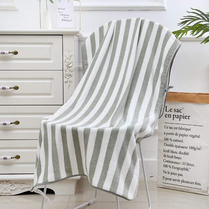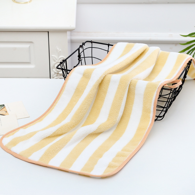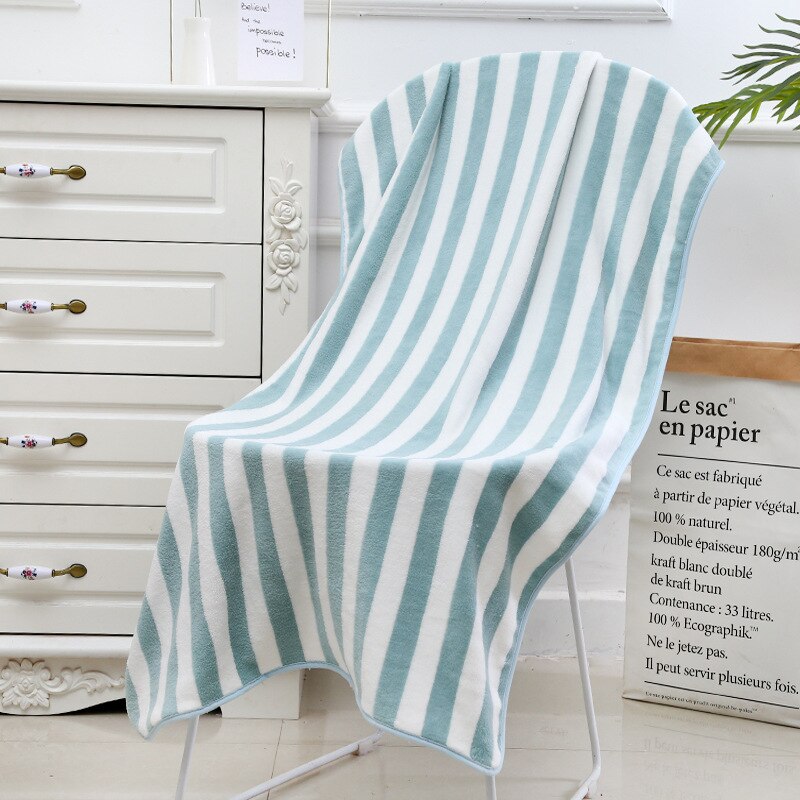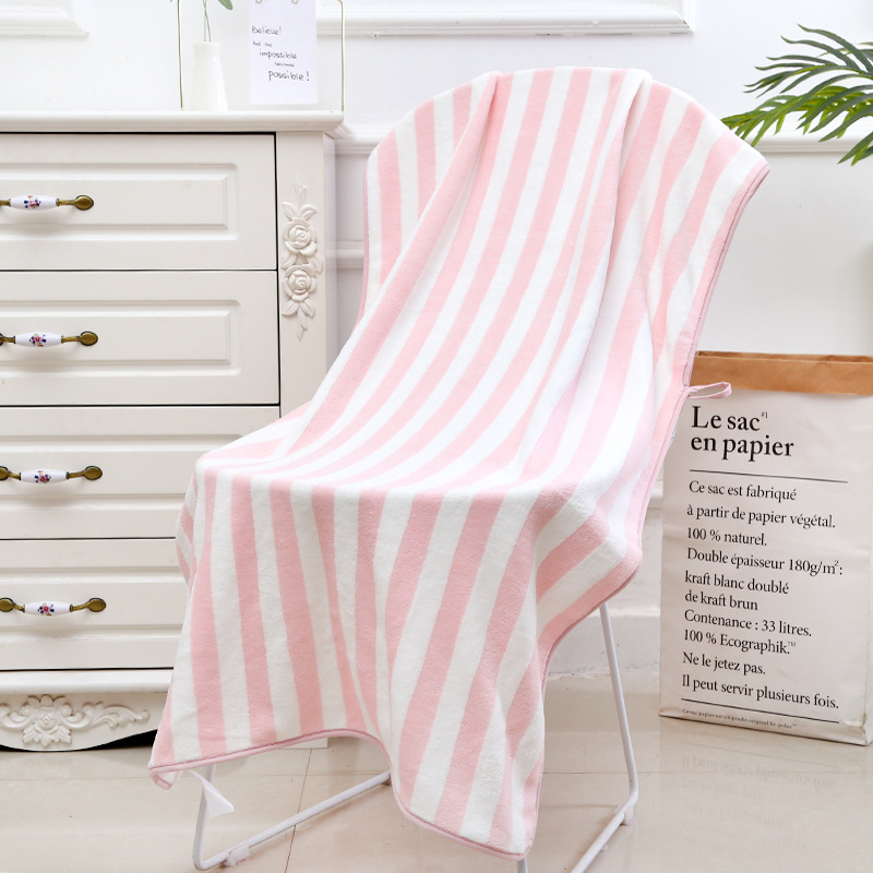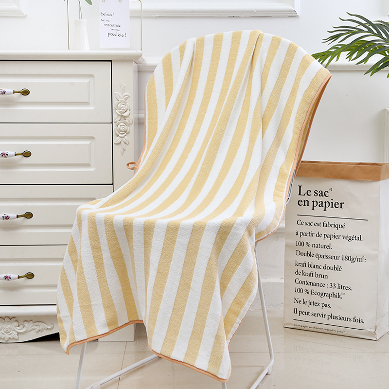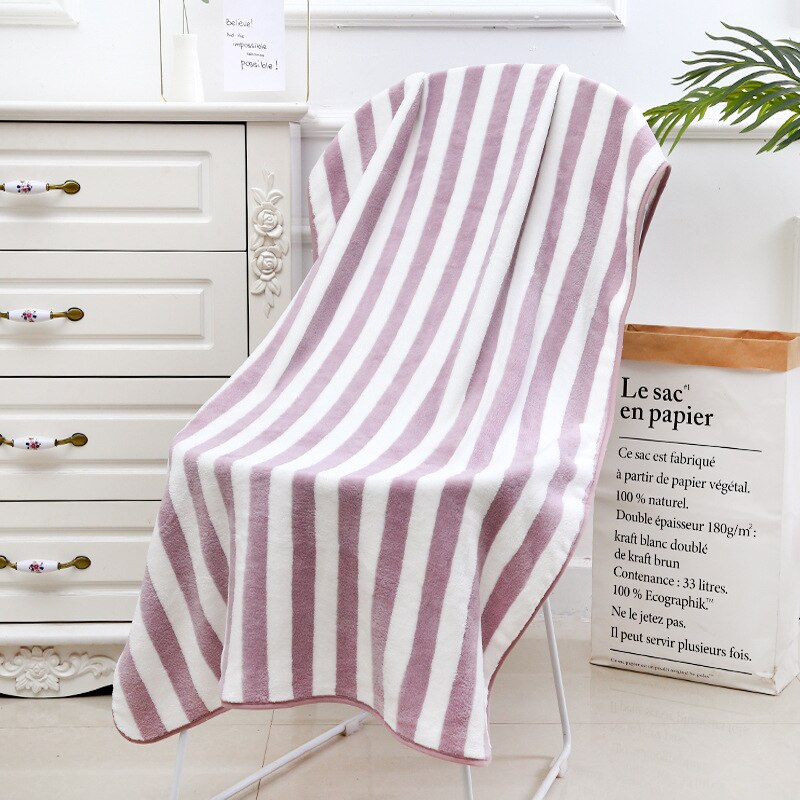 Quick-drying Coral Velvet Bamboo Cellulose Bath Towel Striped Beach Absorbent Thickened Home Decor