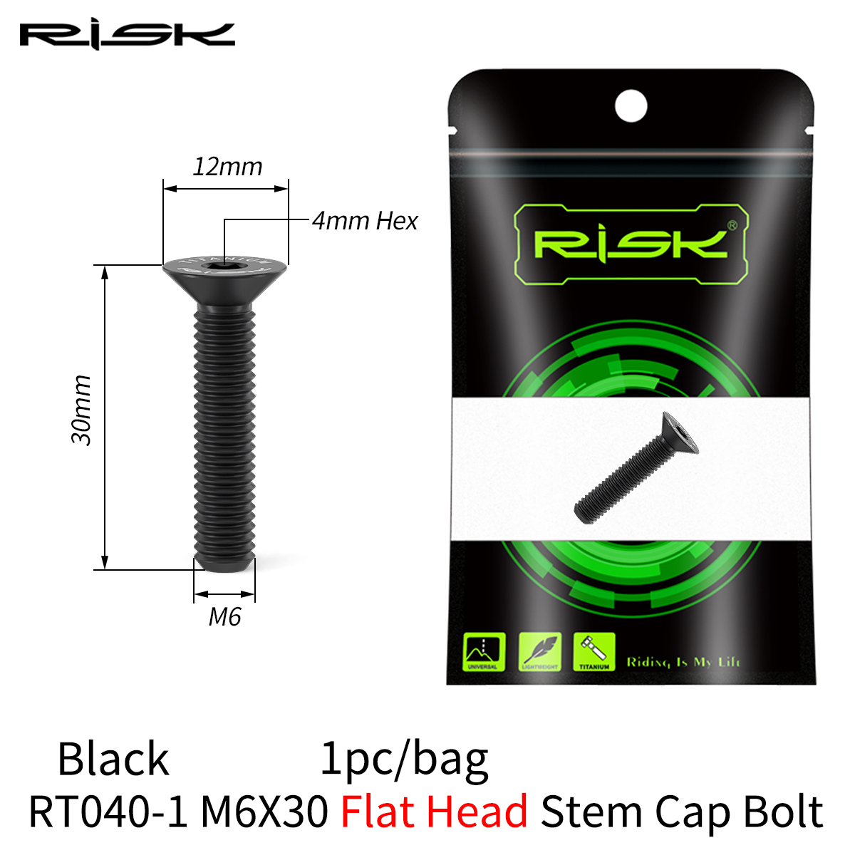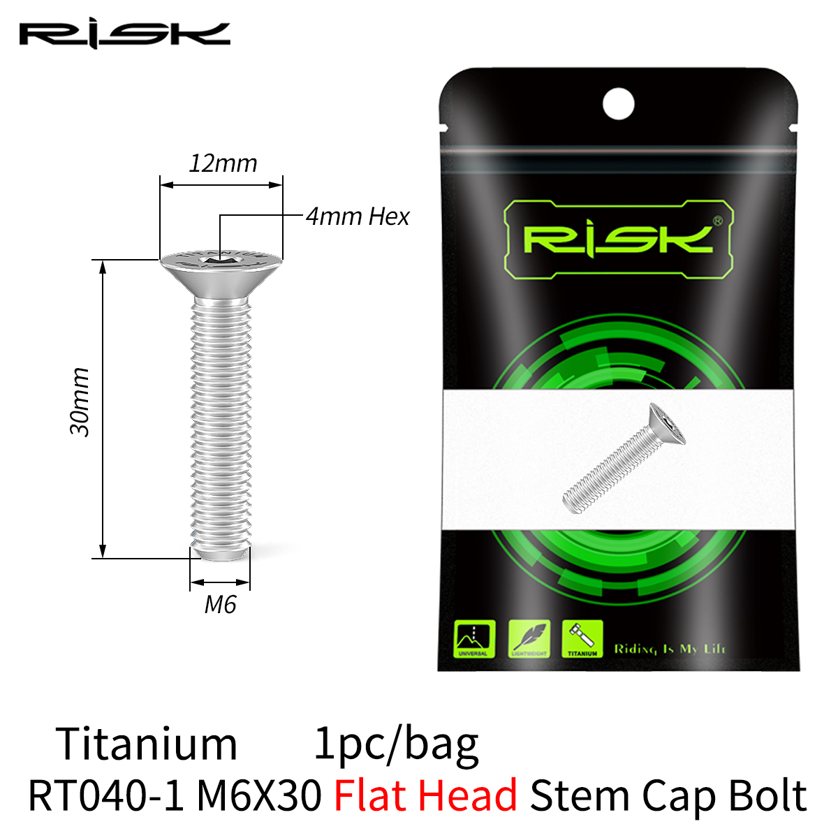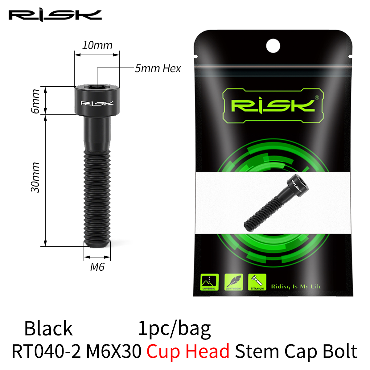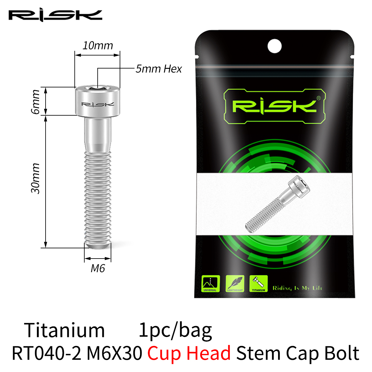 RISK 1PCS M6x30 M6x35 M6x40 M6x50mm Bicycle Headset Bolts Titanium Stem Cap Screws for Mountain MTB Road Bike M6*30/35/40/50mm