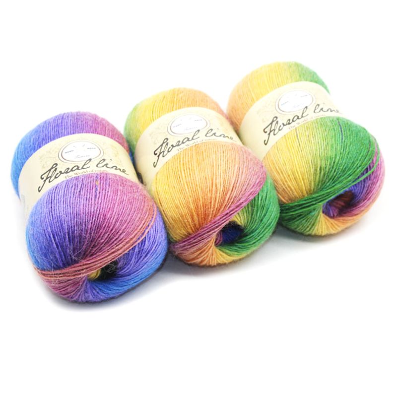 Soft Worsted Yarn Rainbow Gradient Colors DIY Baby Knitting Wool Shawl Scarf Crochet Thread Supplies
