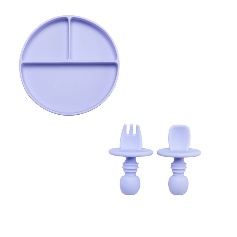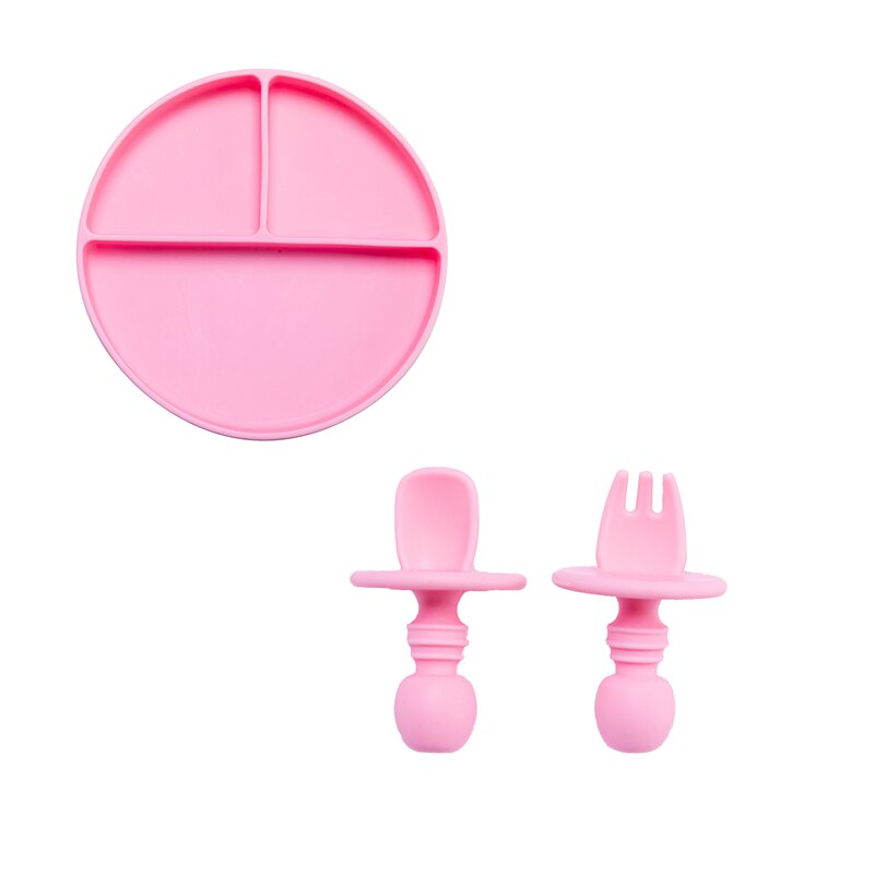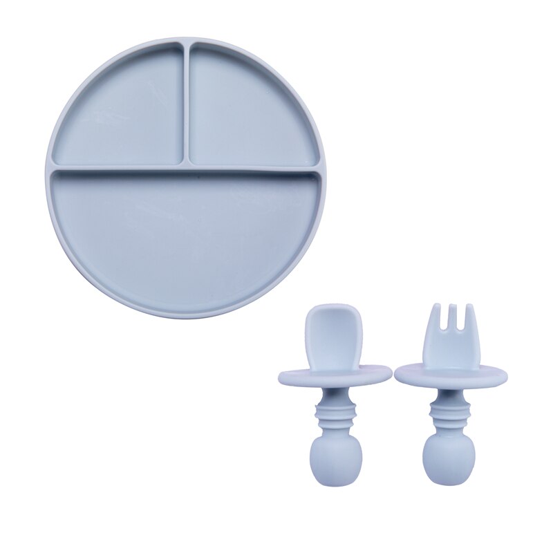 Solid Silicon Plate Set For Baby Kids Training Feeding Dinnerware Baby Learning Plate Set With Fork Spoon BPA Free