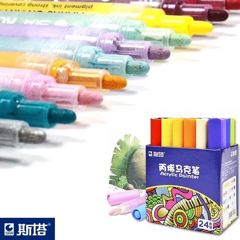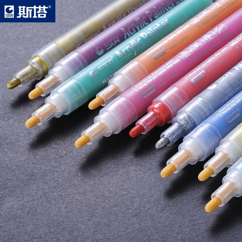 STA 1Pc 2mm Acrylic Paint Marker pen Detailed Marking Color Paint Pens for Ceramic Rock Glass Porcelain Mug Wood Fabric Canvas