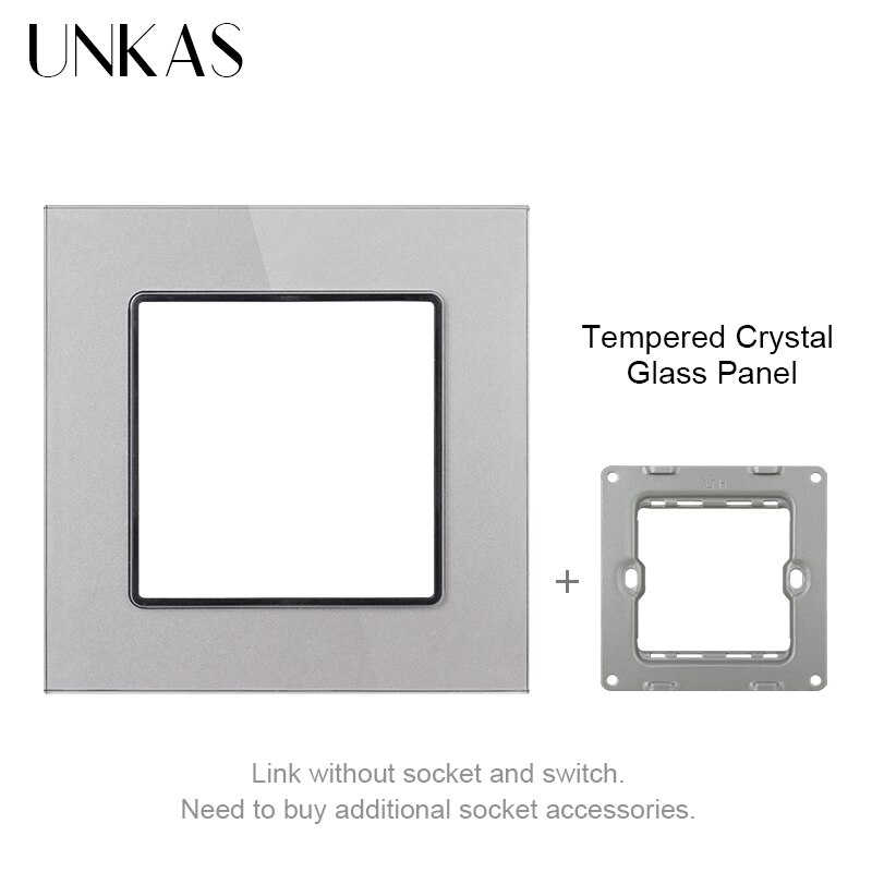 UNKAS Free Combination DIY Gray Single Tempered Crystal Glass Panel Grey Matching Modules For Wall Socket Switch