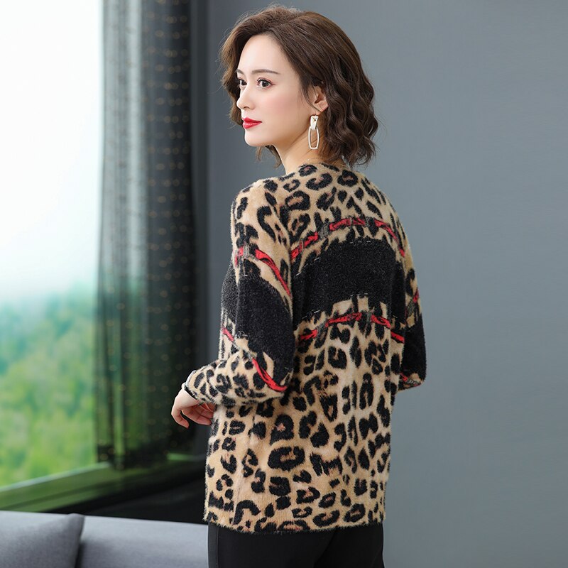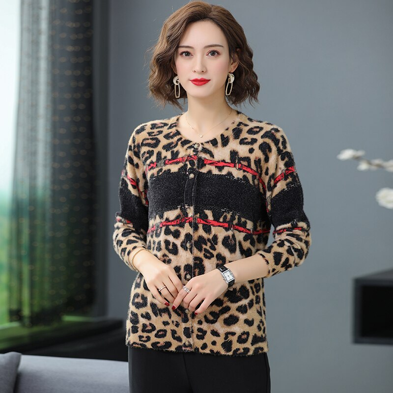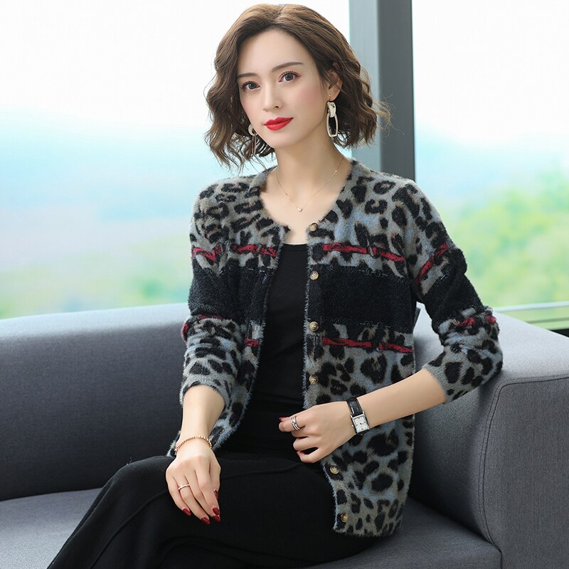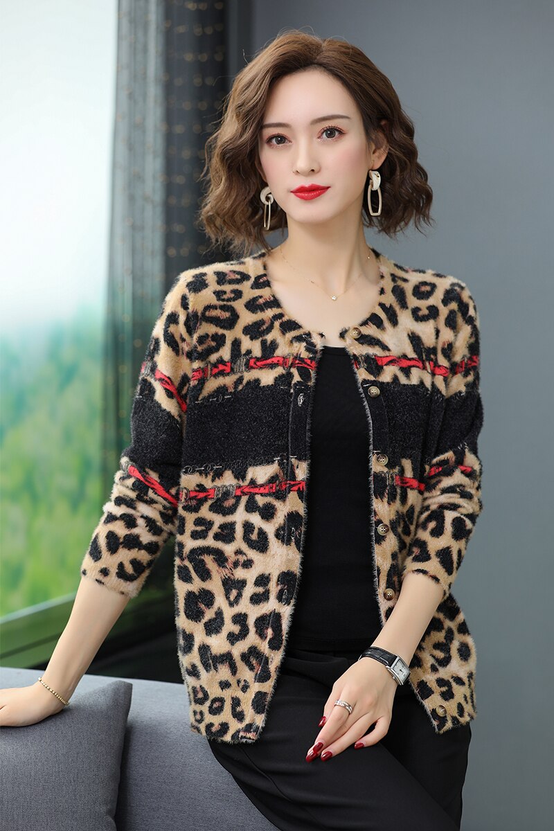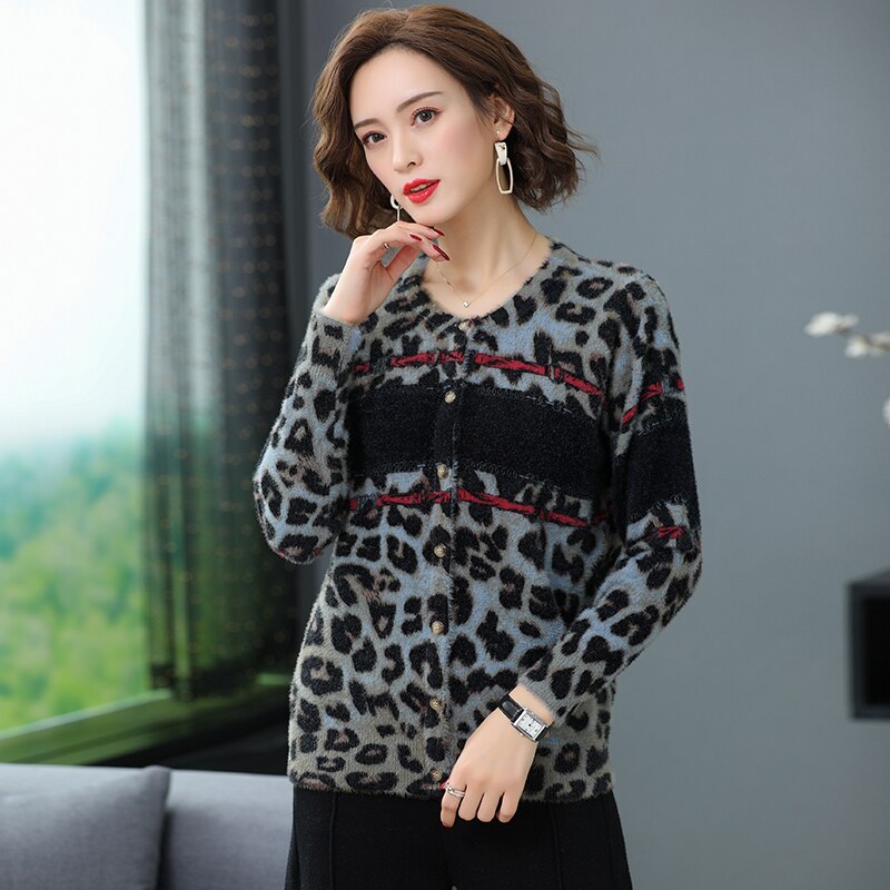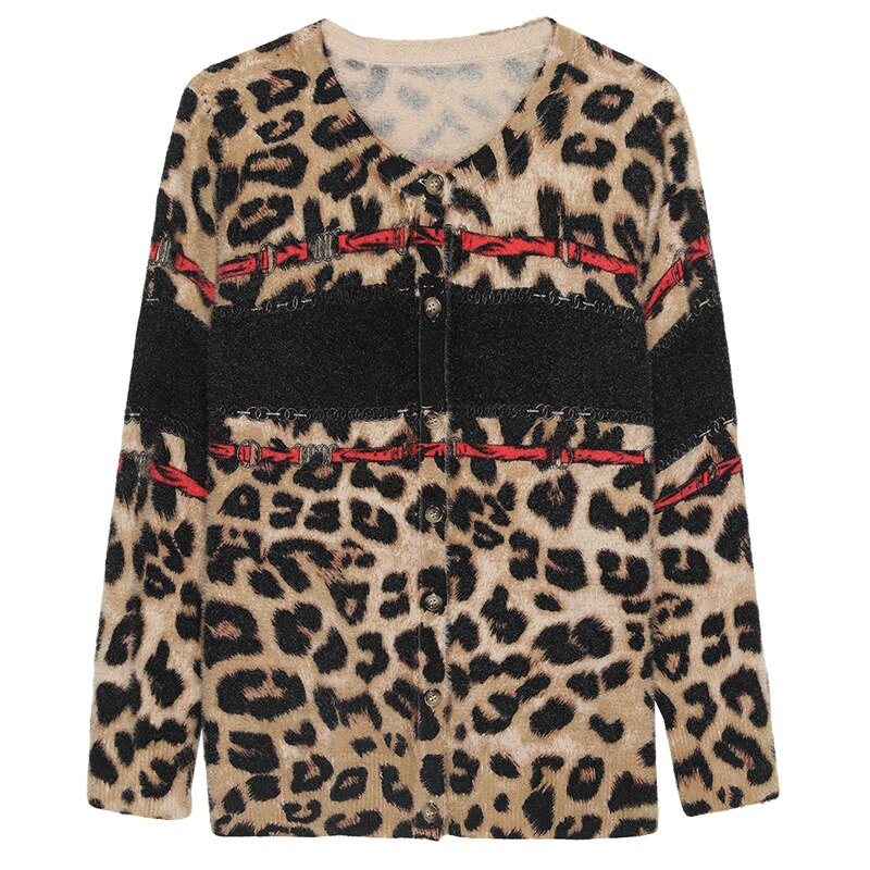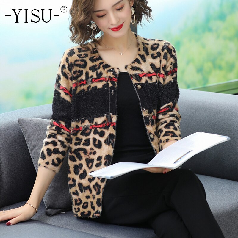 YISU Sweater Cardigan Casual Loose Long Sleeve Single Row Button Sweater Leopard Print Jacket Women Coat Autumn Winter Full